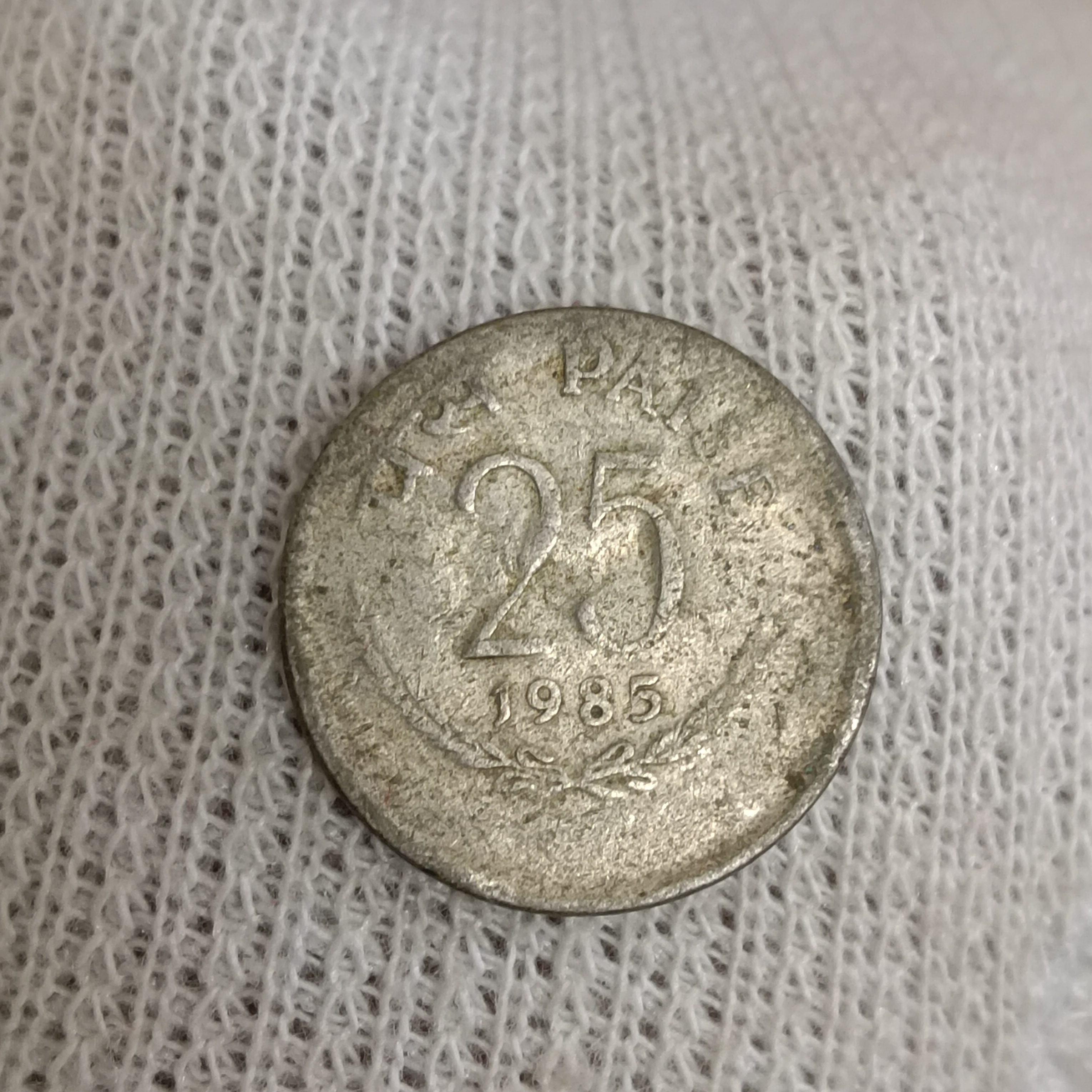 - Twenty Five Paise Copper Nickel Coin Heavy Shifted 1985 Year Calcutta Mint