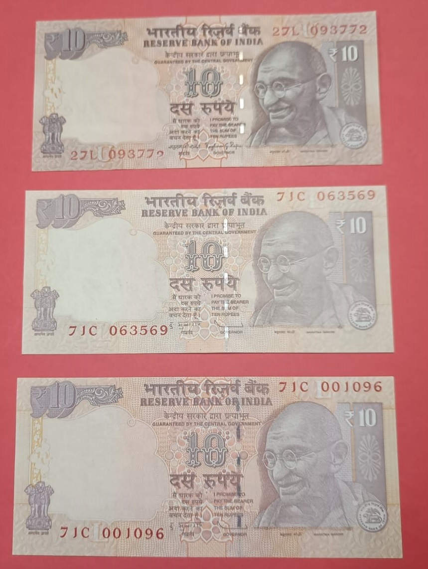 10 Rs old issue Different Errr GEM UNC Condition (Set of 3 Notes)