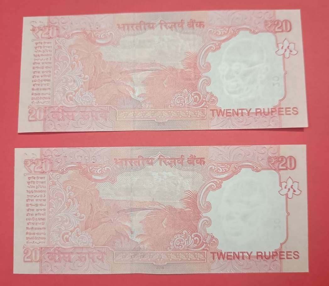 20 Rs Light Print Error GEM UNC Condition old issue (Set of 2 Notes)