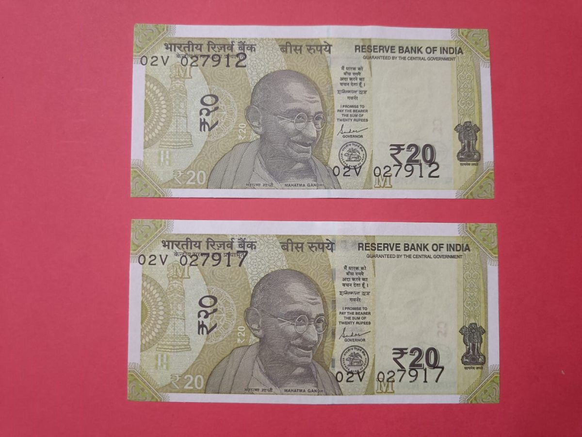 20 Rs Number Shifting Error at both Side UNC Notes (2 Notes)