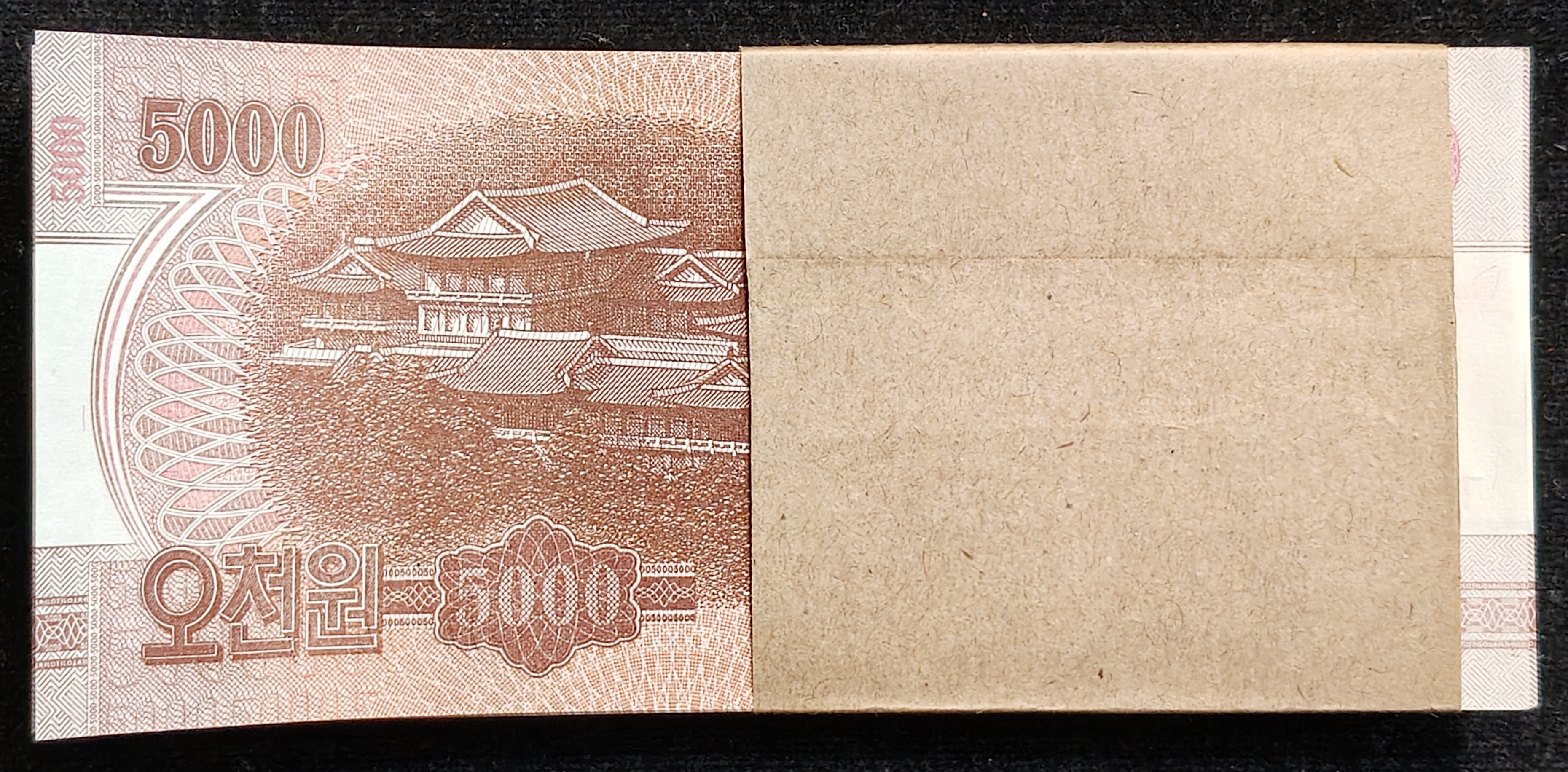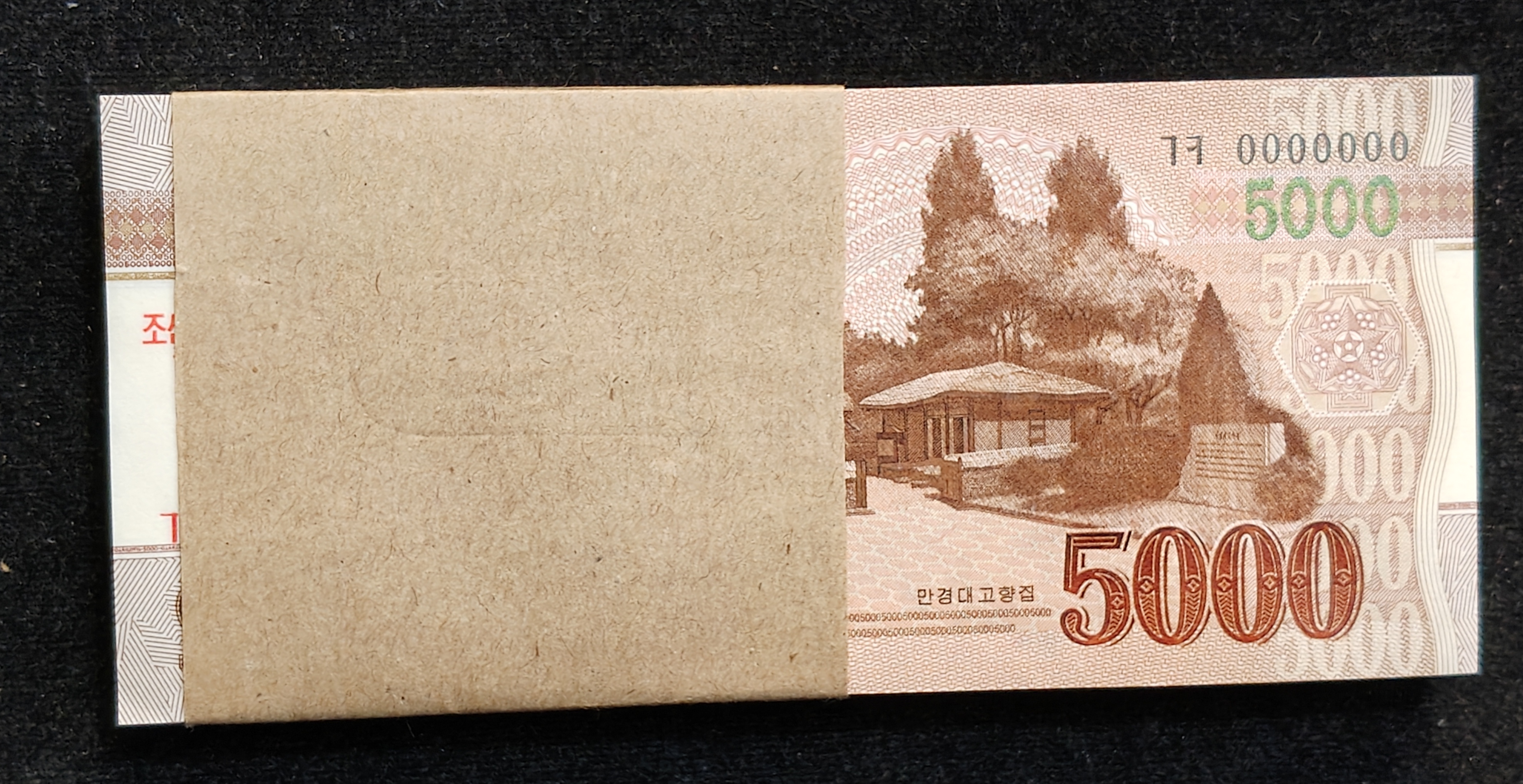 0000000 (Specimen) North Korea 5000 Won Unc (100 Note) Serial Packet
