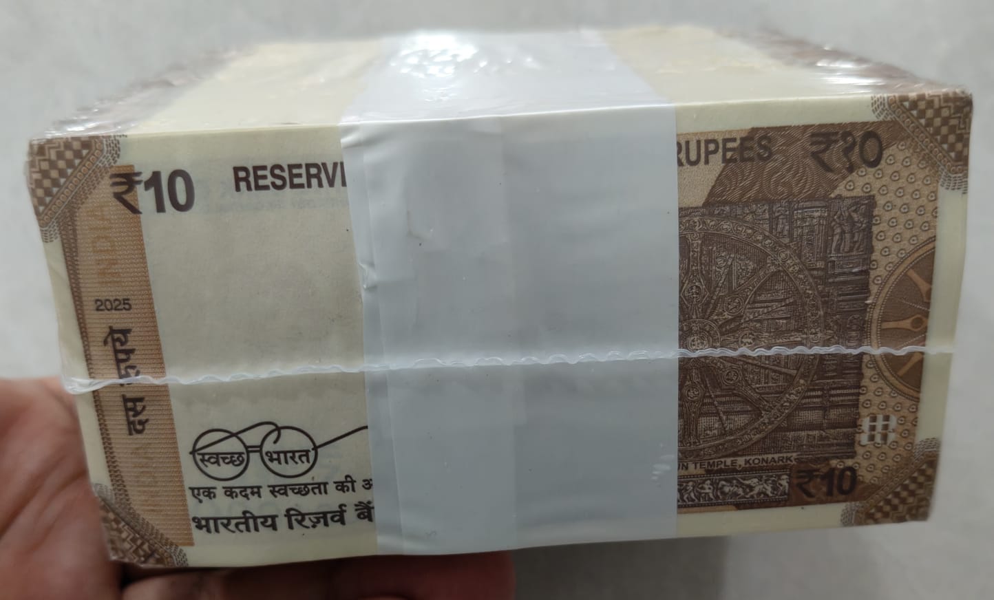 000001 lower number 2025 pack rim 10 Rupees RBI Governor Sanjay Malhotra Sealed 1000 note pack rim