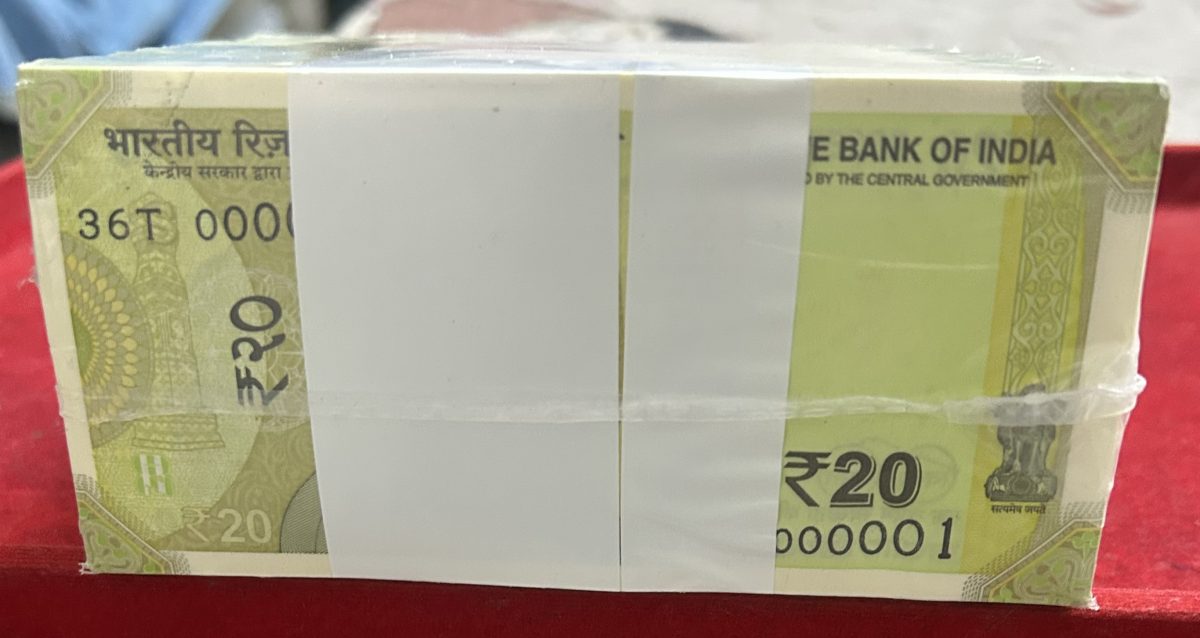 000001 Rim 20 Ruppes seeled pack shasikant dass 1000 Note seeled rim