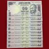 000001 to 000010 Subbarao 2010 50 Rupees Set First Note Stain Otherwise Unc