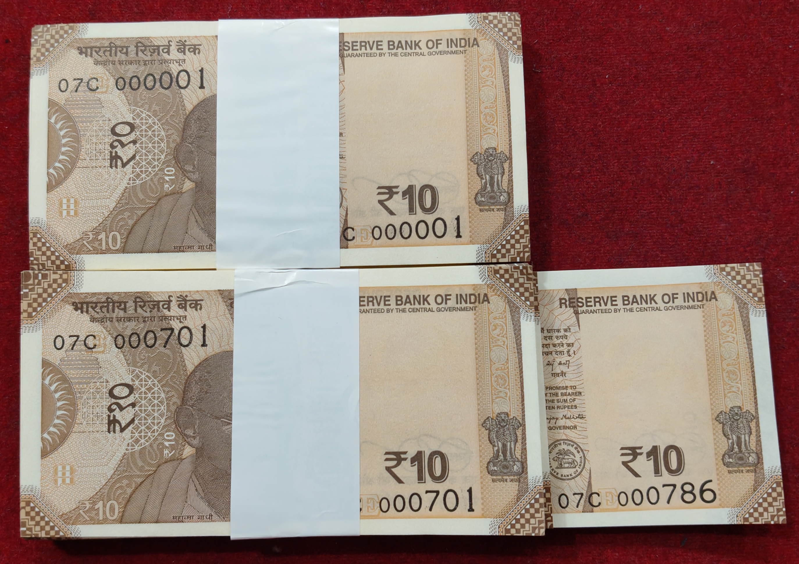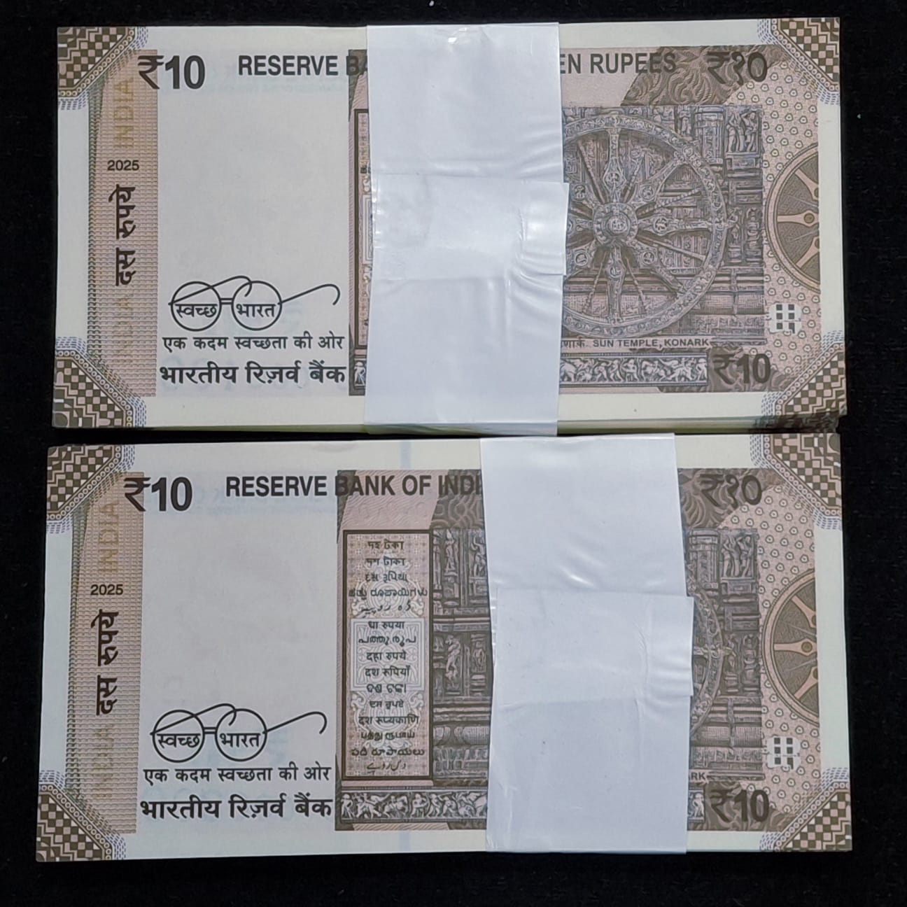 (000001 TO 000100) + (000701 TO 000800) FANCY NUMBER SERIEL PACKET 10 RUPEES 2025 GOVERNOR SANJAY MALHOTRA SAME PREFIX 2 PACKET