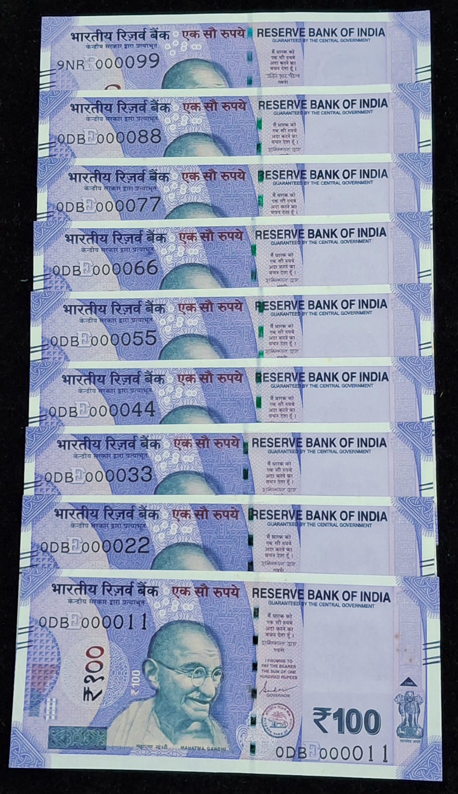000011 – 000099 ( 9 PCS SET) 100 RUPEES GEM UNC RARE ( 9 NOTE SET)