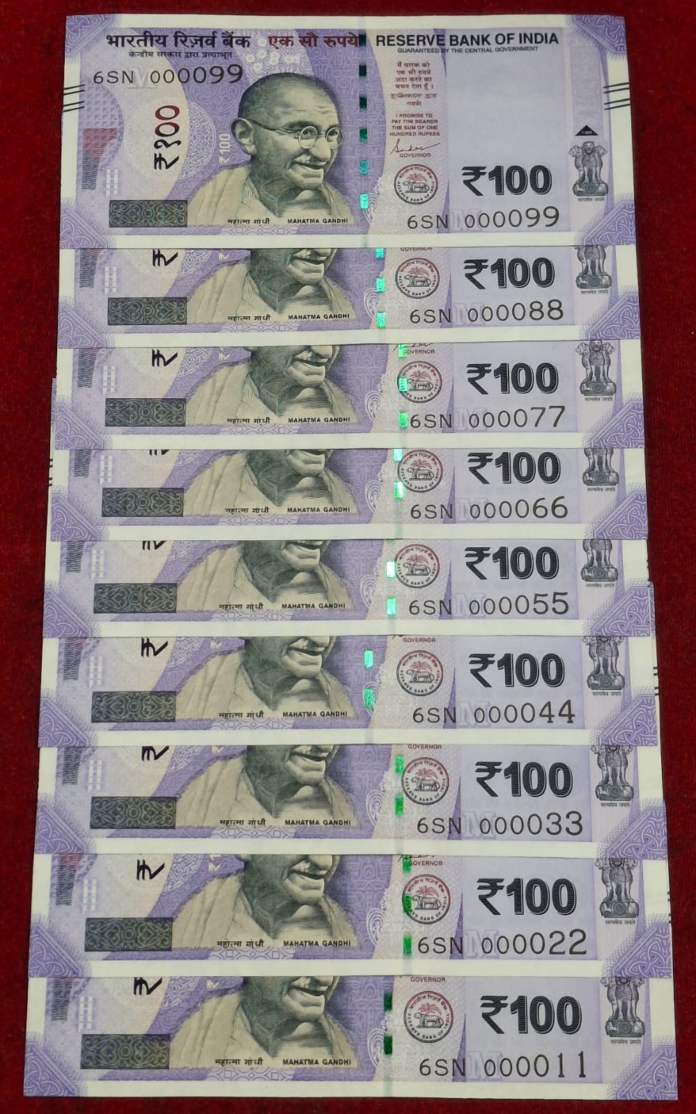 000011- 000099 ( 9 PCS SET) 100 RUPEES GEM UNC RARE ( 9 NOTE SET)