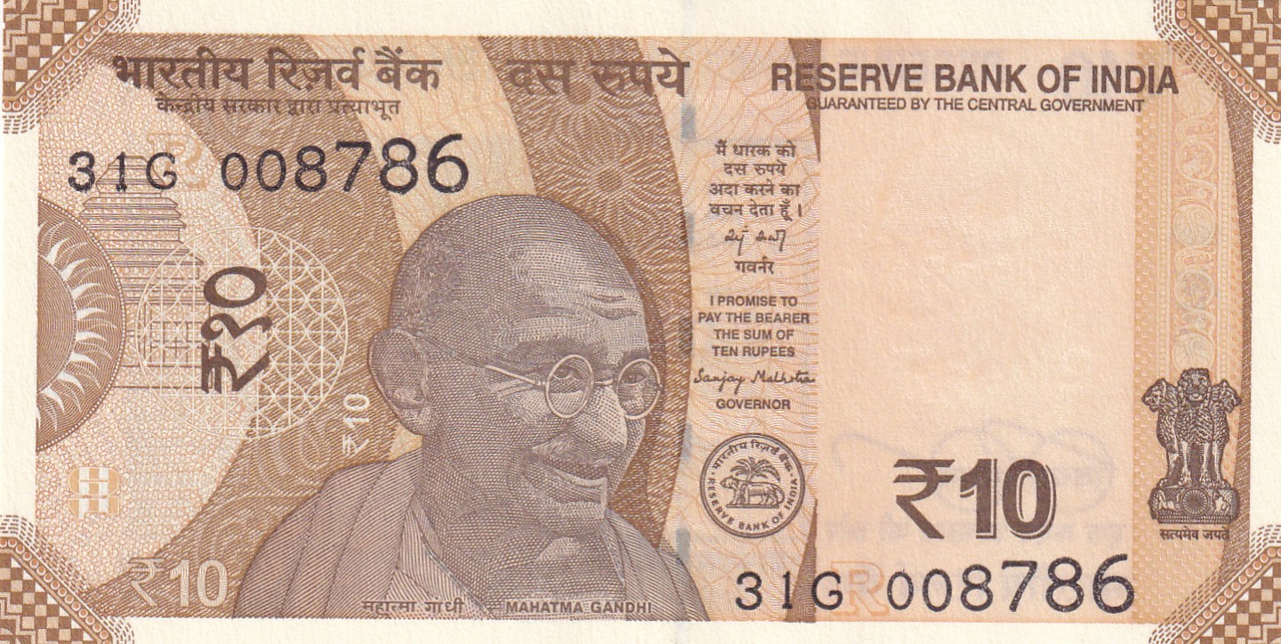 008786 Fancy Number 10 Rupees Governor Sanjay Malhotra Rare Note