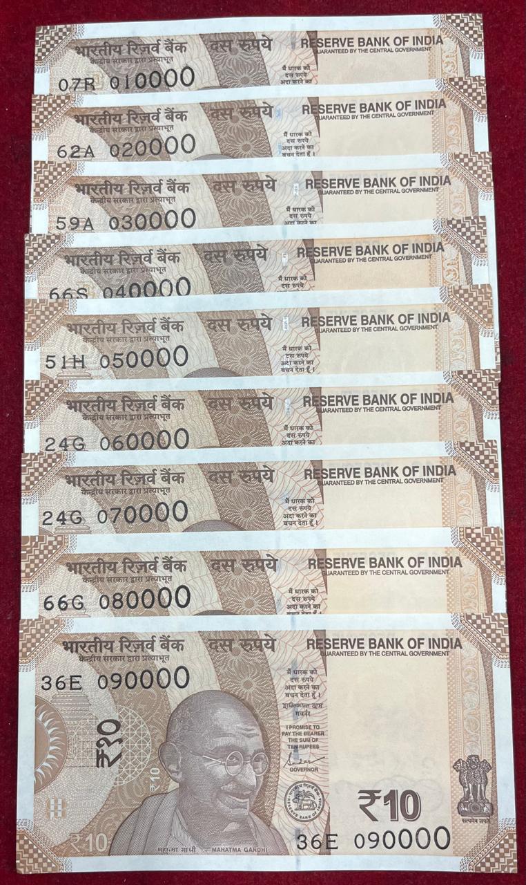 010000 -090000 ( 9 PCS SET) 10 RUPEES GEM UNC RARE ( 9 NOTE SET)