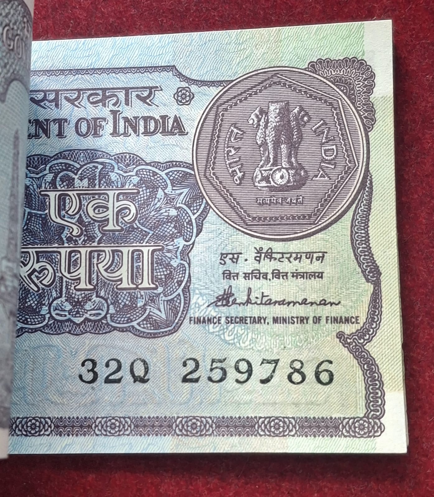 1 RUPEES 1985 GOVERNOR S.Venkataraman RARE ( 100 NOTES) SERIAL PACKET WITH FANCY NUMBER ENDING 786