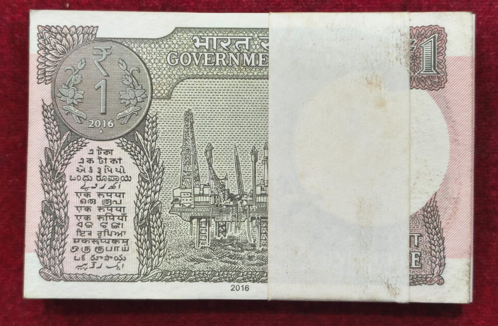 1 RUPEES 2016 GOVERNOR RATAN P WATEL GEM UNC RARE ( 100 NOTE ) SERIAL PACKET WITH SEMI FANCY DOUBLE 786