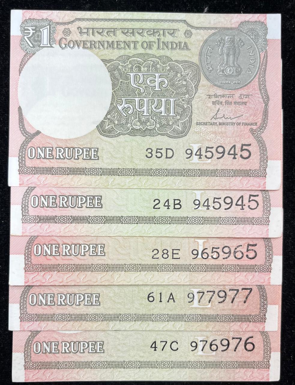 1 RUPEES DOUBLING ( JODA NUMBER ) GEM UNC ( 5 PCS LOTT )