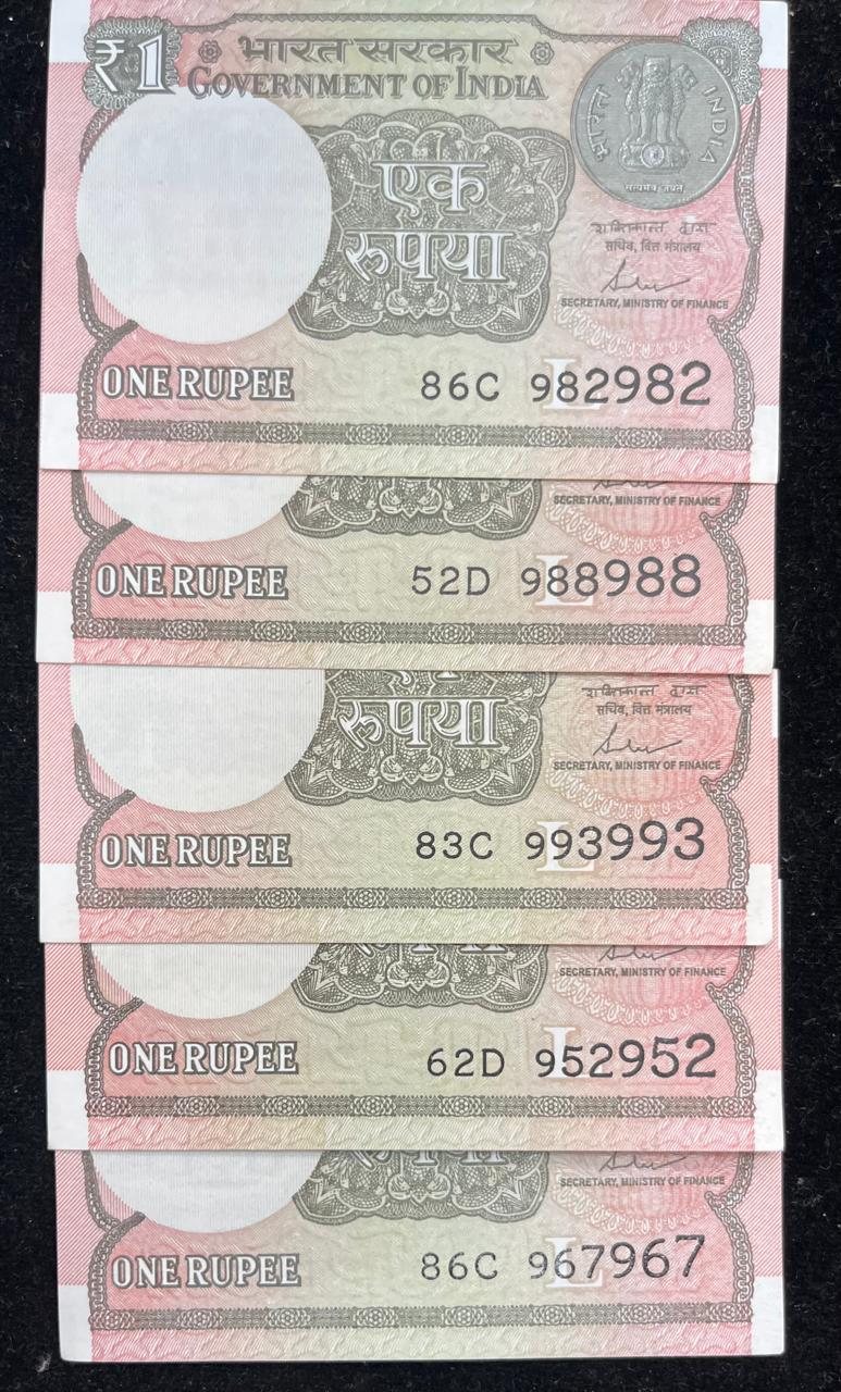 1 RUPEES DOUBLING ( JODA NUMBER ) GEM UNC ( 5 PCS LOTT )