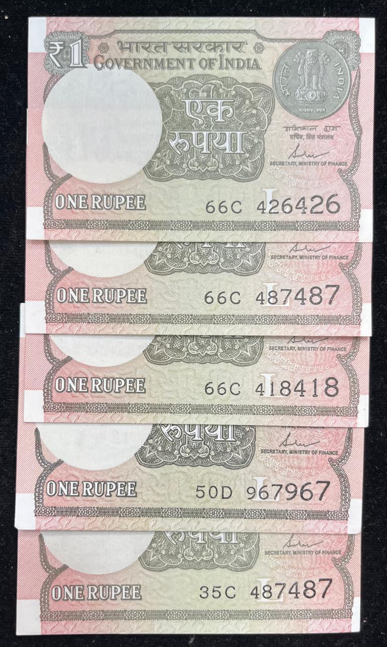 1 RUPEES DOUBLING ( JODA NUMBER ) GEM UNC ( 5 PCS LOTT )