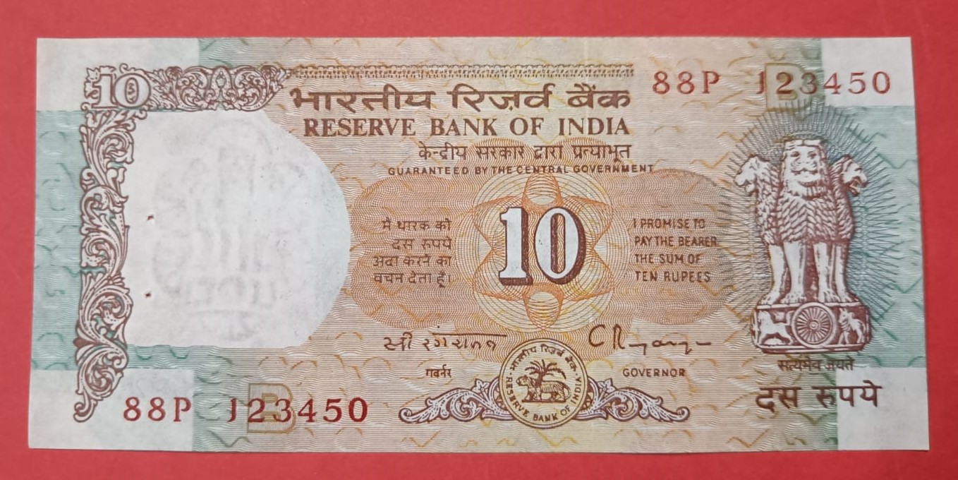 10 Rs Shalimar Note Super fancy Number 012345 GEM UNC Condition
