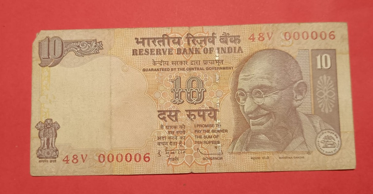 10 Rs Super Lower Serial Number 000006 Note