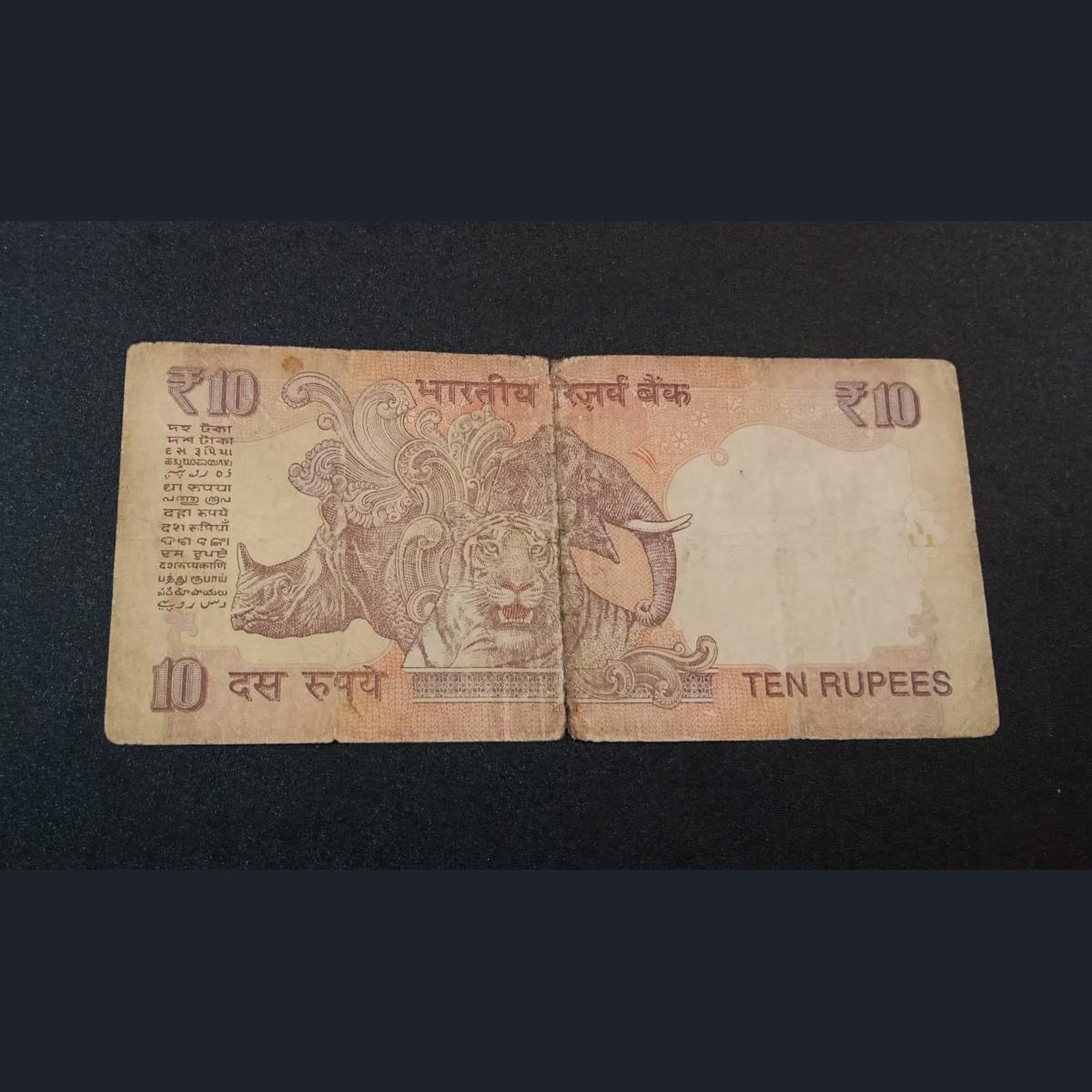 10 Rupees Gandhi Series Signature RAGHU RAM RAJAN Small Digits SEMI SUPER FANCY Number 07-777777 **RARE** Used Repaired Condition.