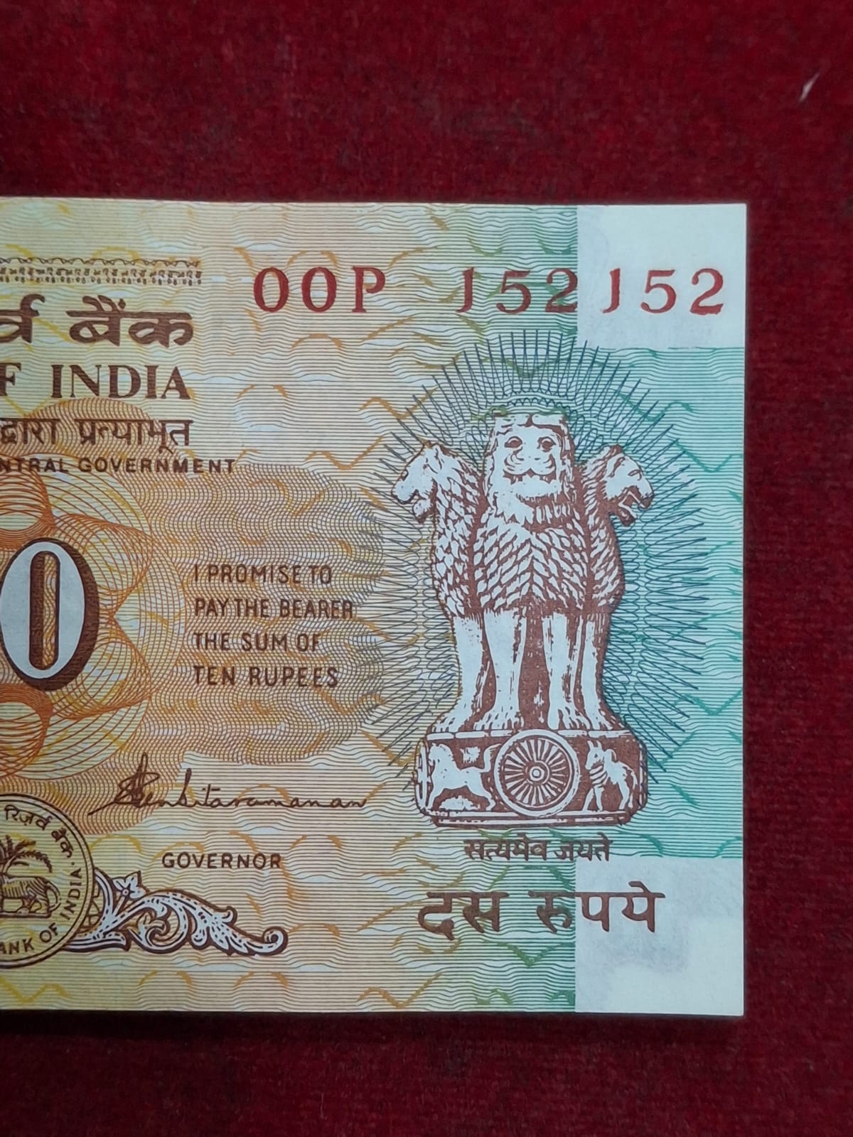 10 RUPEES GOVERNOR S.VENKATARAMAN RARE SERIAL PACKET WITH DOUBLING NUMBER 152152
