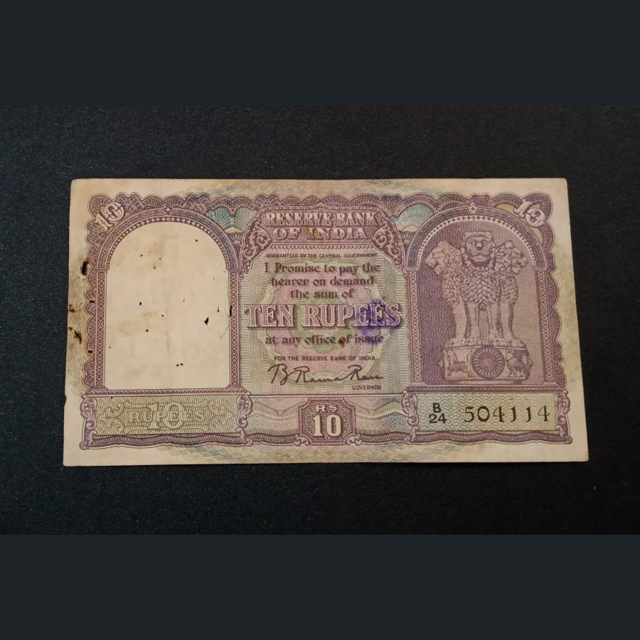 10 Rupees Old Big FAFRA Issue Signatue B.RAMA RAO “ONLY ENGLISH” Catalog Number D-2 “SECOND ISSUE” with 541-SAI Number VERY RARE High Collectable Grade.