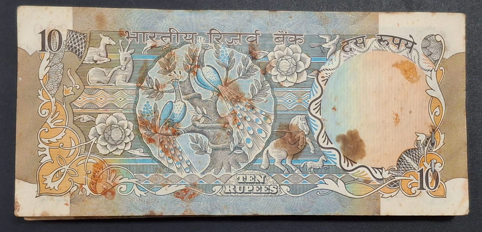 The 10 Rupees Peacock Governor R.N. Malhotra Rare 100 Notes Serial Packet with Fancy Number Ending 786 is a highly sought-after collectible item for numismatists and banknote enthusiasts. Issued by the Reserve Bank of India, this packet contains 100 notes, with the first and last note showing minor stains while the rest remain in uncirculated condition. Each note features a beautifully designed peacock motif, a symbol of India’s rich cultural heritage.