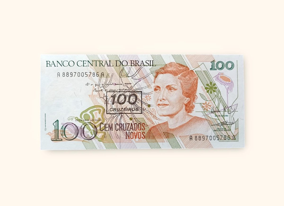 100 Cruzeiros Novos Banknote from Brazil Holy Number Ending 786 Very Unique and Rare