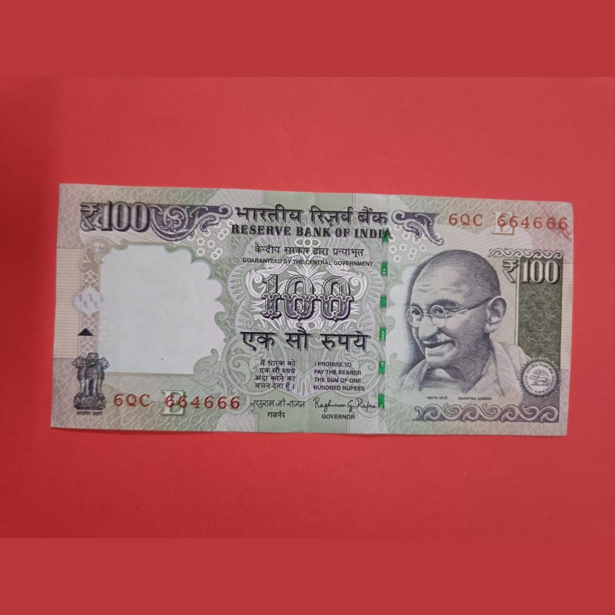 100 Rs Semi Fancy Number with Similar Prefix and Spread Ink Error.