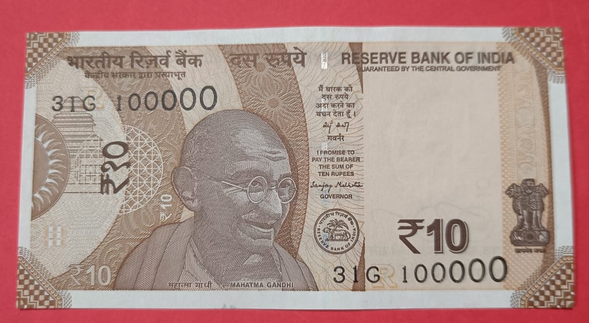 10 Rs Fancy Number 100000 GEM UNC Condition Collectors Item