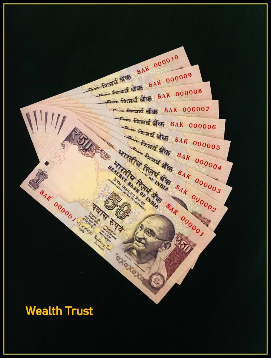Rs 50 India Banknote Fancy Number Set 000001 to 10 GEM UNC UNIQUE Previous Issue Small Font Unc
