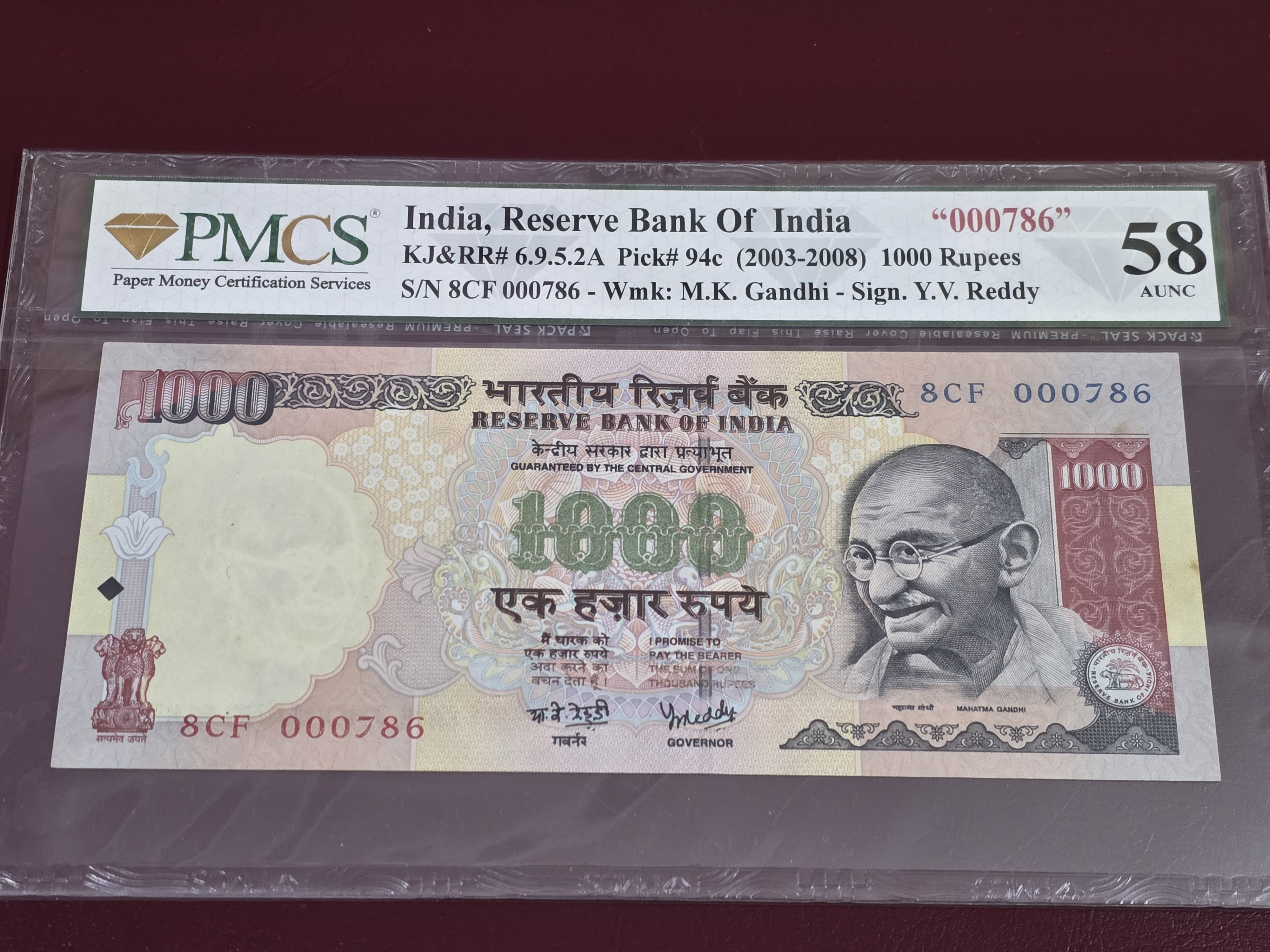 1000rs fancy 000-786 signed by yv reddy without year. Scarce issue
