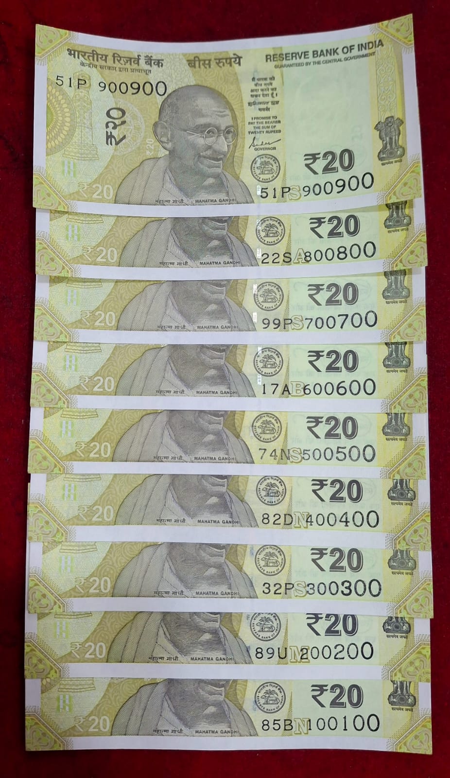 100100 – 900900 ( 9 PCS SET) 20 RUPEES GEM UNC RARE ( 9 NOTE SET)