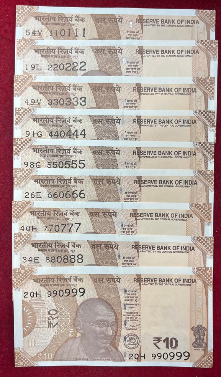 110111 – 990999 ( 9 PCS SET) 10 RUPEES GEM UNC RARE ( 9 NOTE SET)