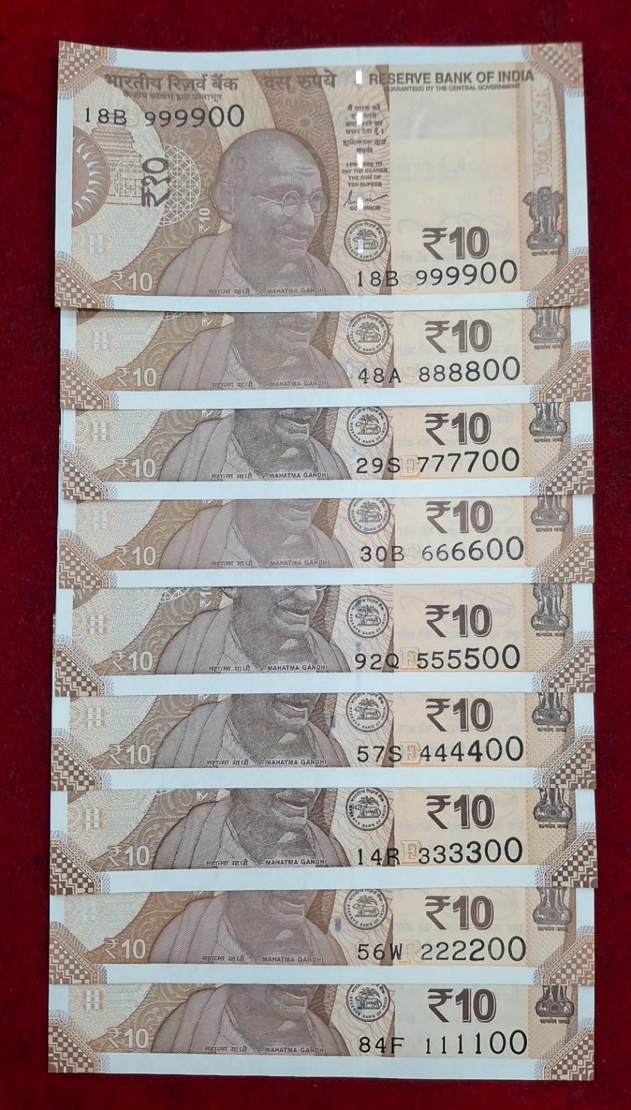 111100 – 999900 ( 9 PCS SET) 10 RUPEES GEM UNC RARE ( 9 NOTE SET)