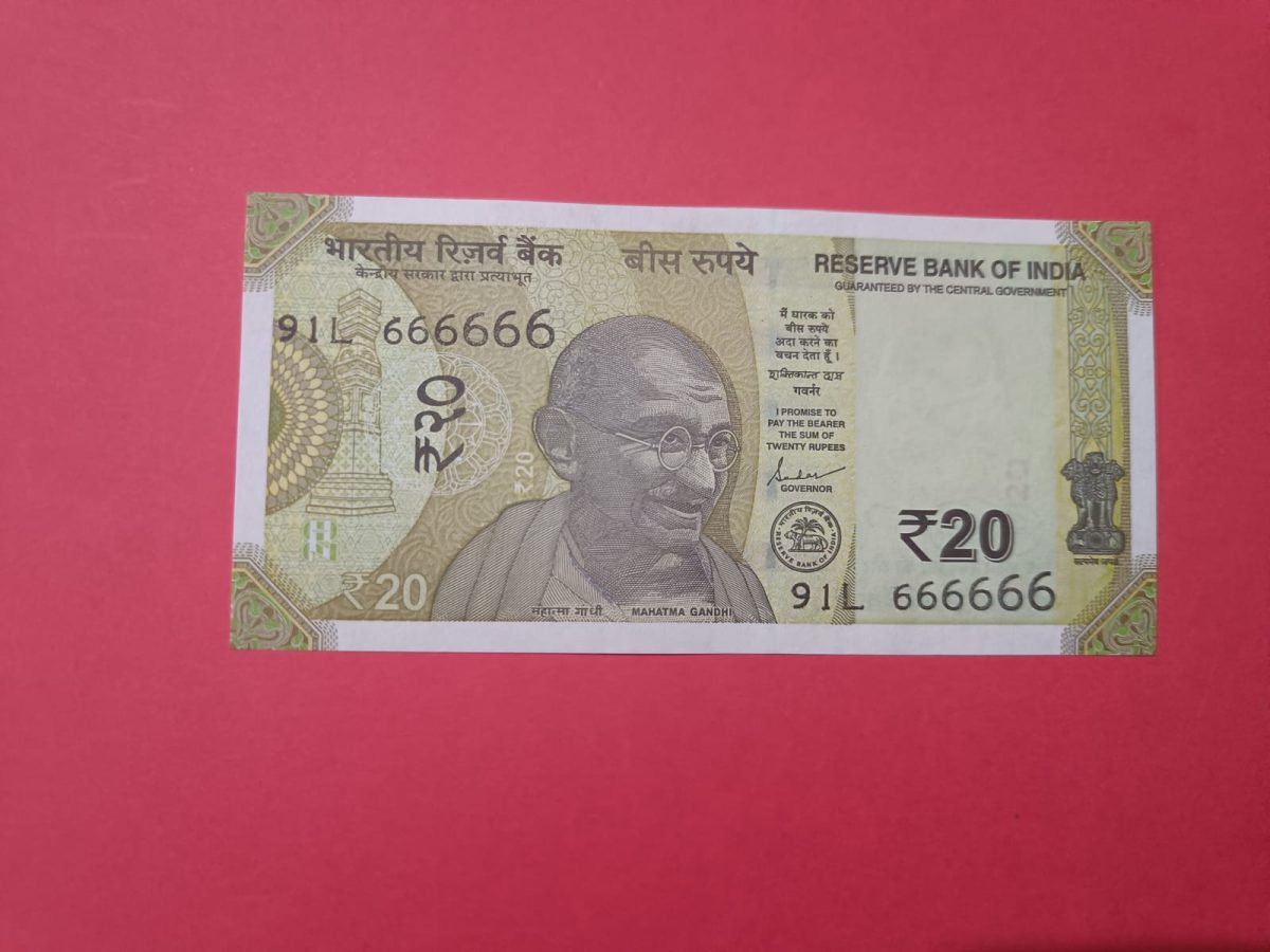 20 Rs Sold Fancy Number 666666 GEM UNC Condition