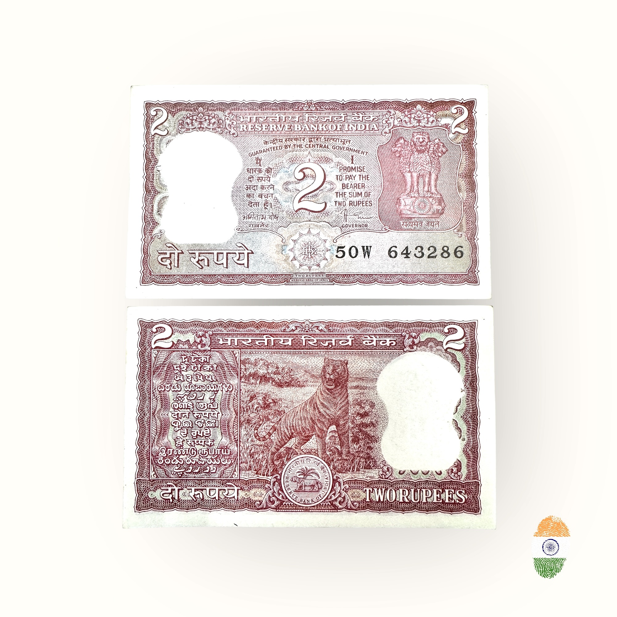 B 20 Rs 2 India Banknote Signature Series Signed By Amitabh Gosh Tiger Issue Inset Plain 1985 Unique and Rare