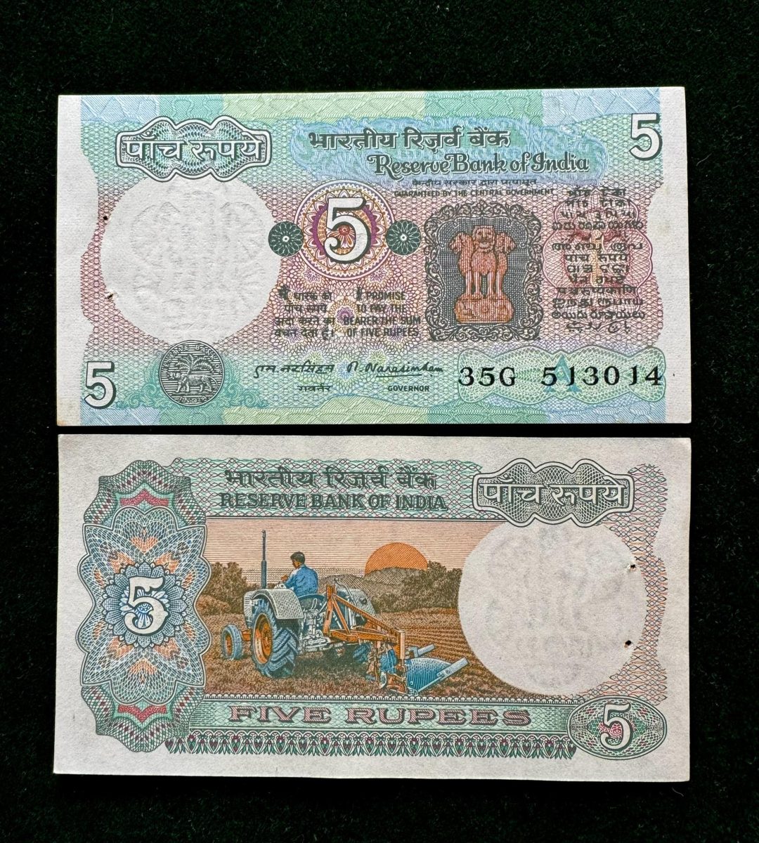 C 18 Rs 5 India Banknote Signature series Signed by M NARSHIMHAM Inset A 1977 Issue