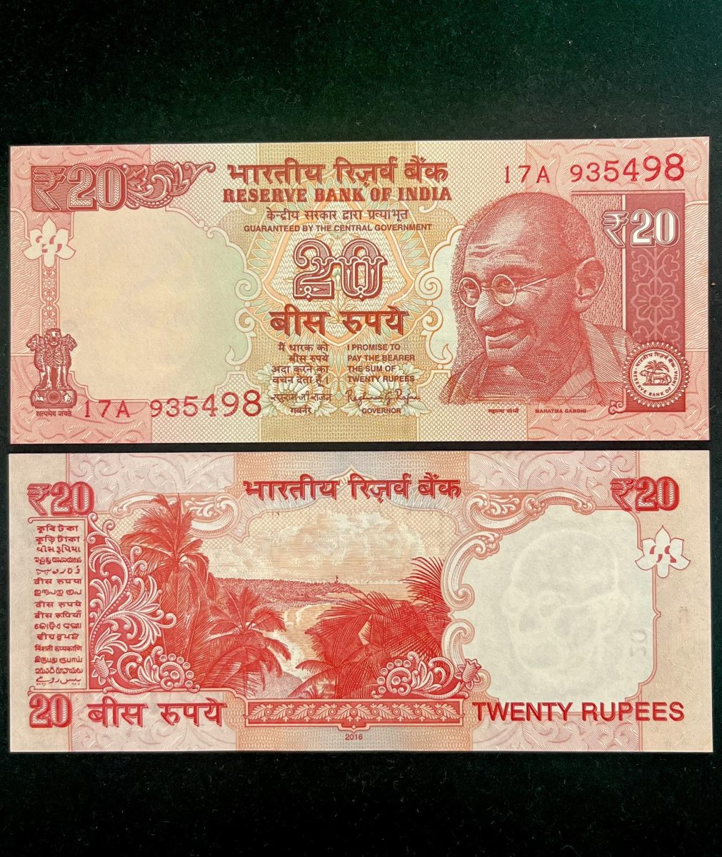 E-52 Rs 20 India Banknote Signature series Signed by RAGHURAM RAJAN Inset PLAIN 2016 issue