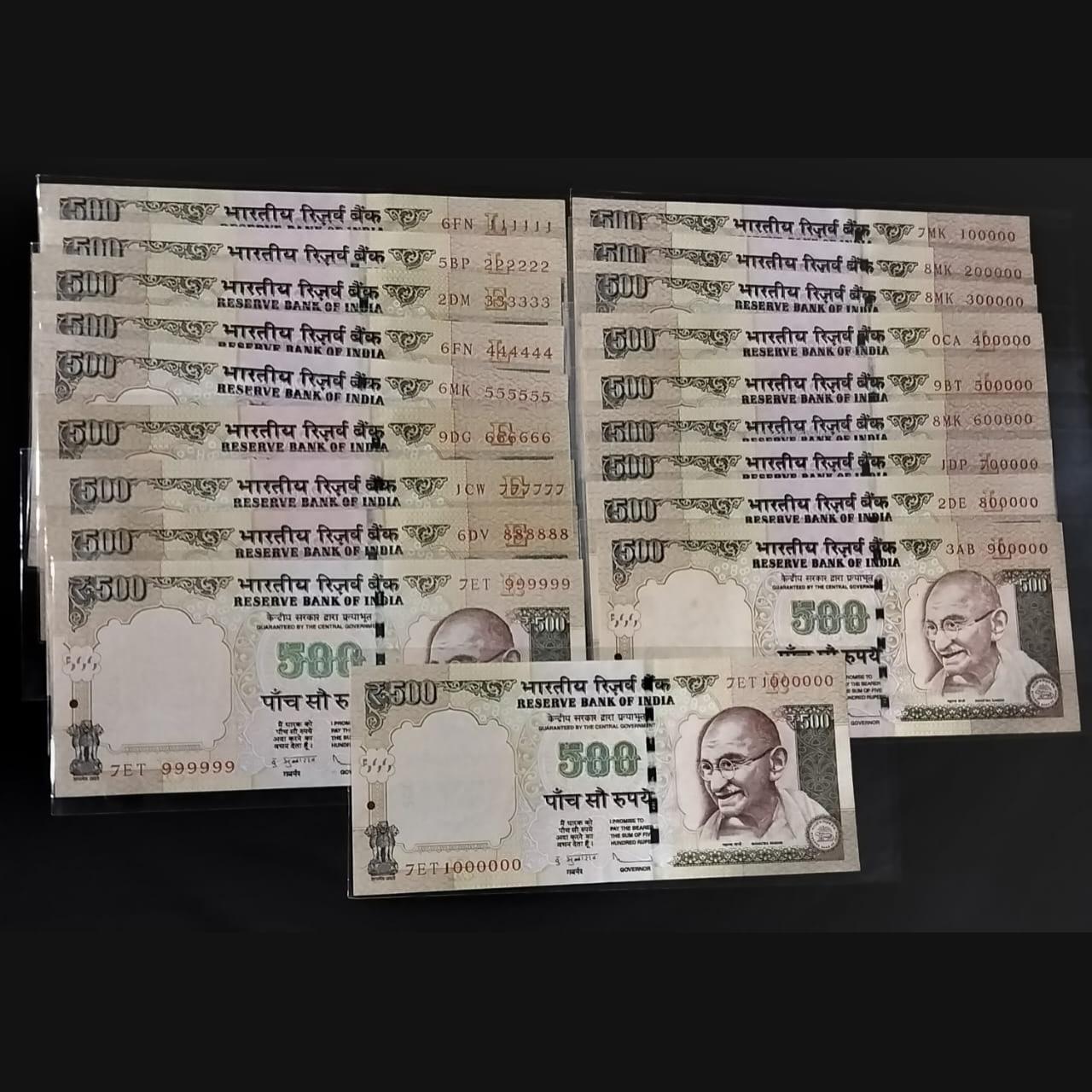 Extremely Rare 500 Rupees Note Set With Unique Serial No with Gem UNC