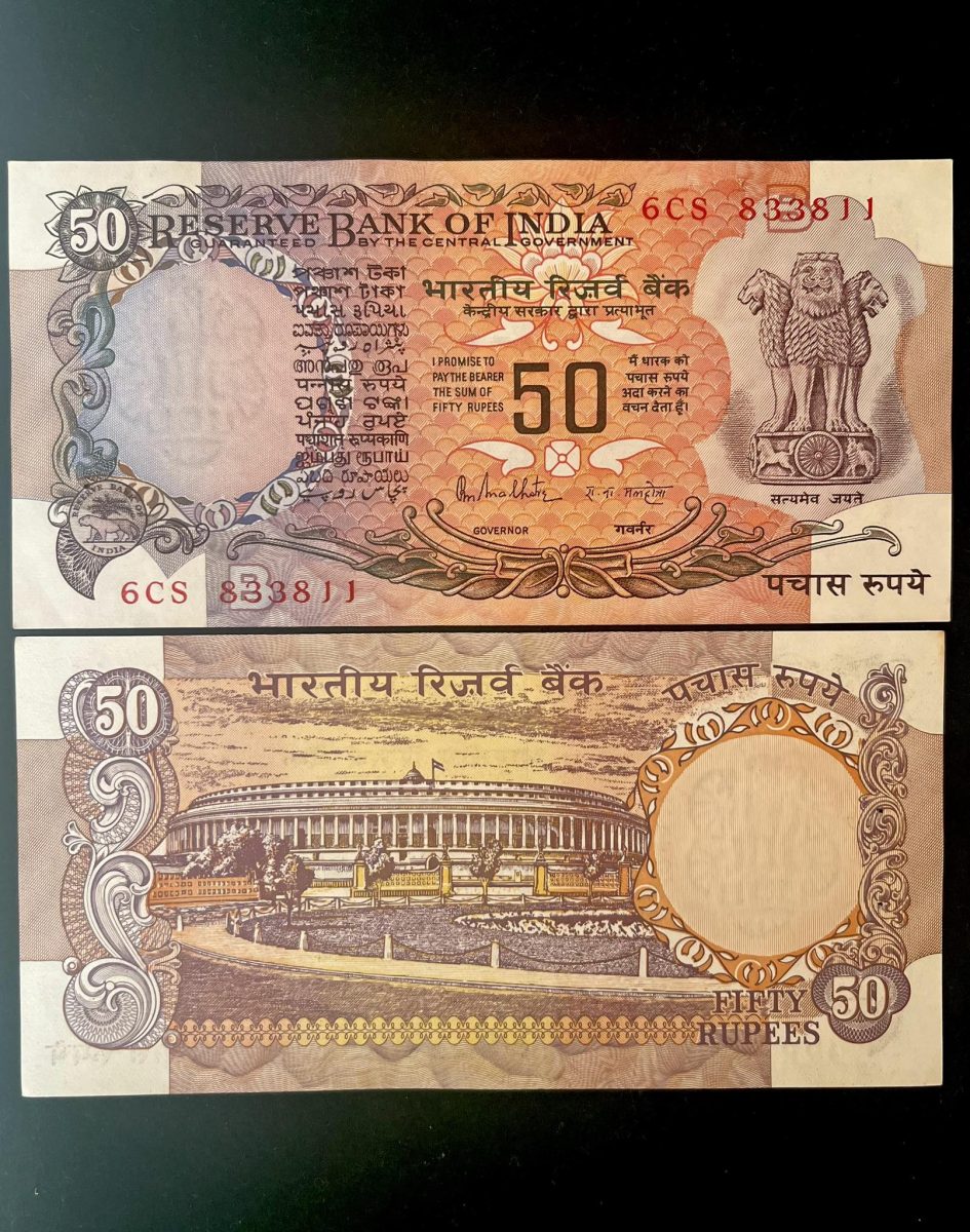 F-9 Rs 50 India Banknote Signature series Signed by R.N.MALHOTRA Inset B 1985 – 90 issue
