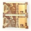 India Banknote Rs 10 Twin Set Gem Unc Bank Note Set Solid Number 14H 666666