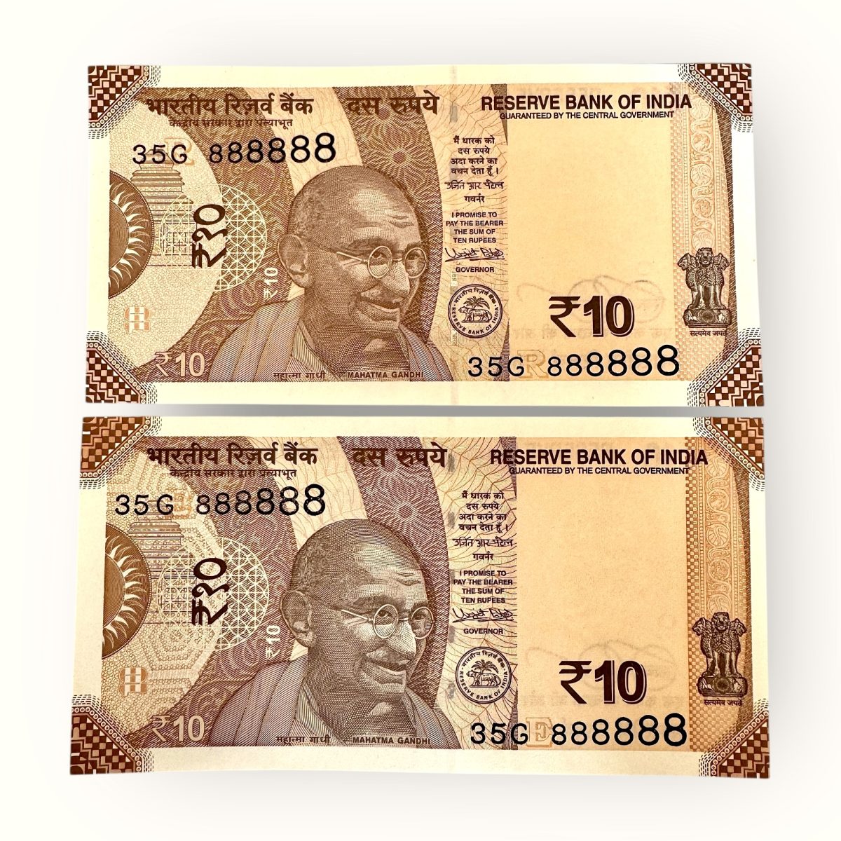 India Banknote Rs 10 Twin Set Gem Unc Bank Note Set Solid Number 35G 888888