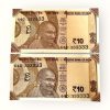 India Banknote Rs 10 Twin Set Gem Unc Bank Note Set Solid Number 57H 333333