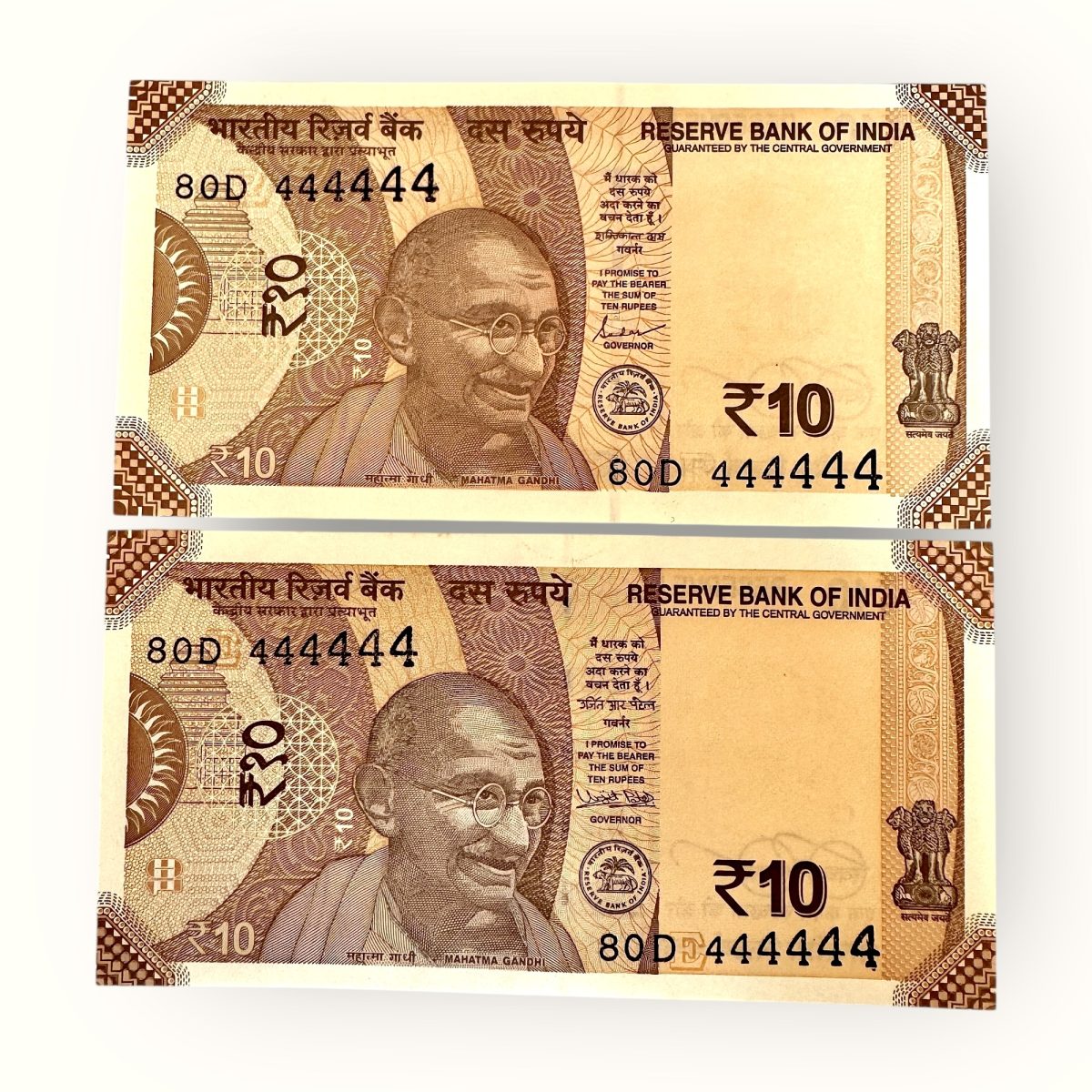 India Banknote Rs 10 Twin Set Gem Unc Bank Note Set Solid Number 8OD 444444