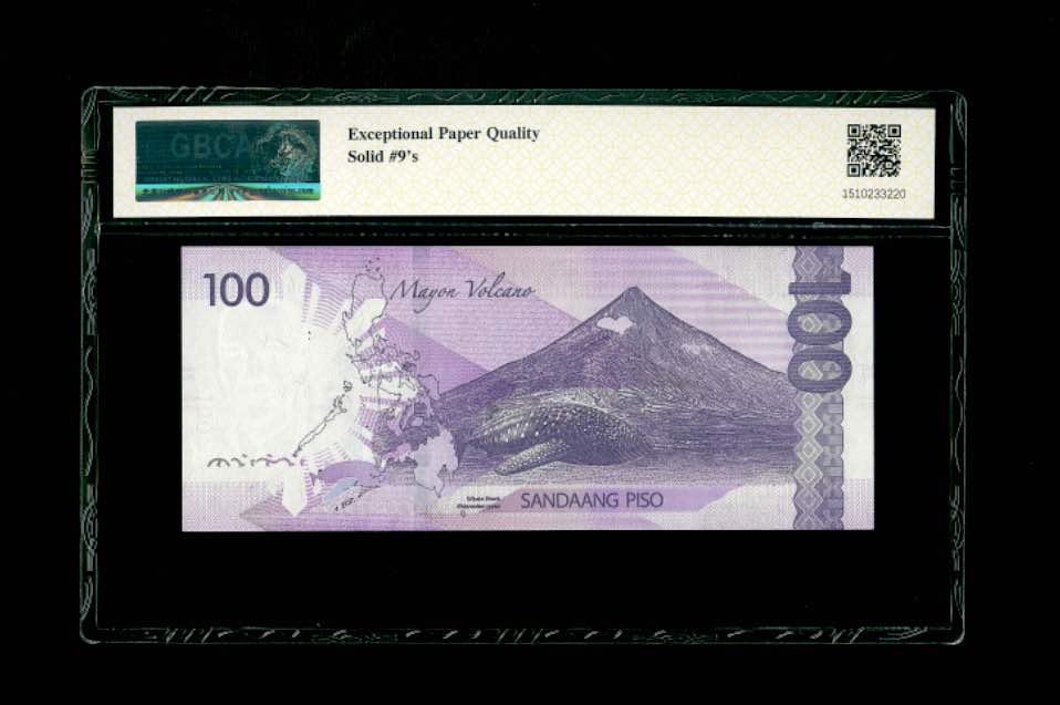 Philippines Bangko Sentral Super Fancy Serial Number B999999 Gem UNC Graded EPQ 66 Unique and Rare