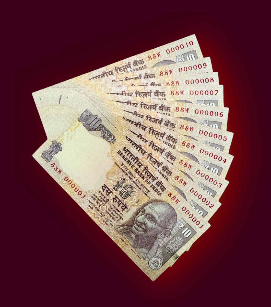 Rs 10 India Banknote Extreme Rare Issue 88W 000001 TO 10 B Inset 2016 Raghuram Rajan Unique and Rare