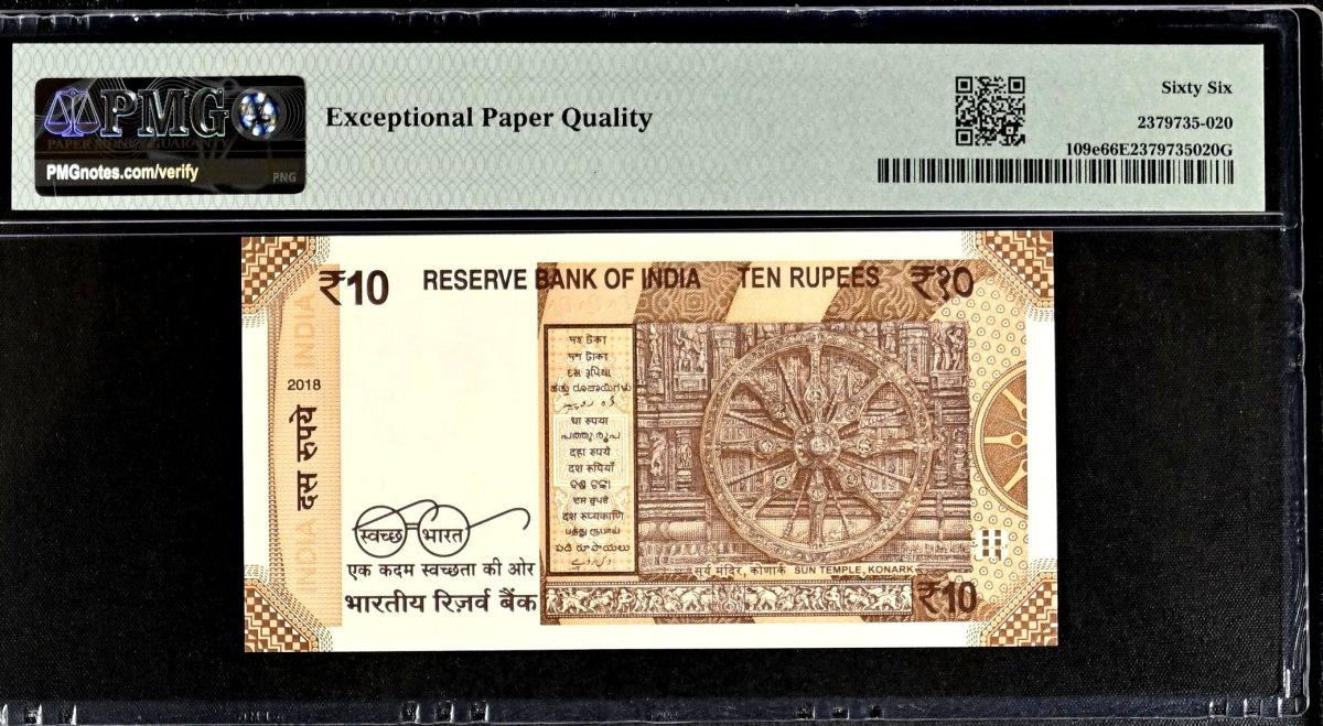 Rs 10 India Banknote Graded By PMG 66 EPQ Issue Year 2018 Signed By Urjit Patel 33S 333333 Very unique and Rare
