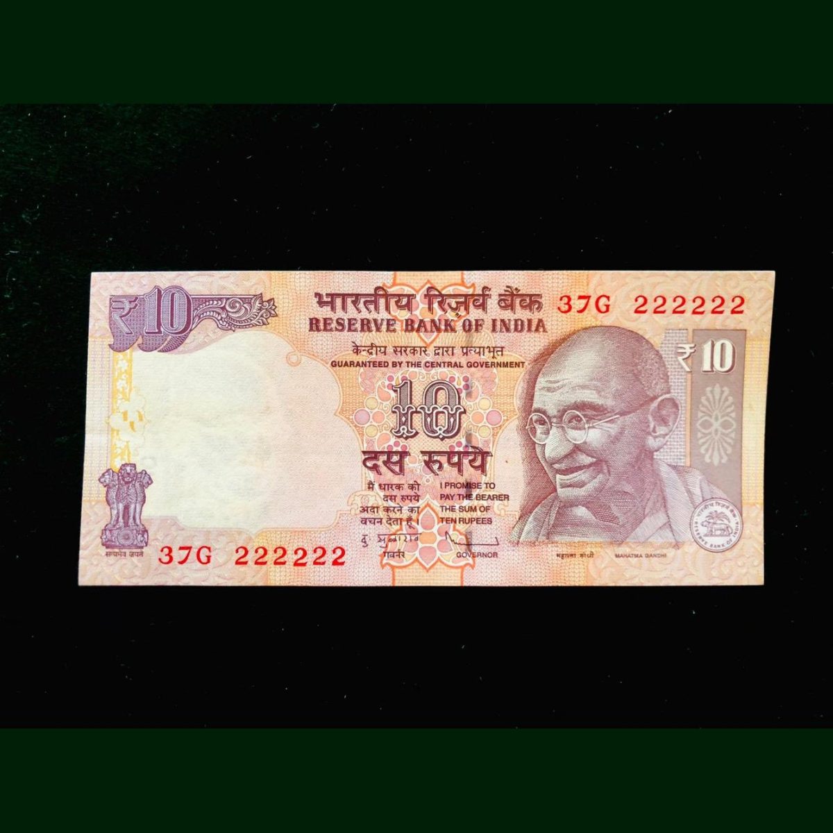 Rs 10 India Banknote Solid Fancy Number 222222 Gem Unc Top Collection Small Font