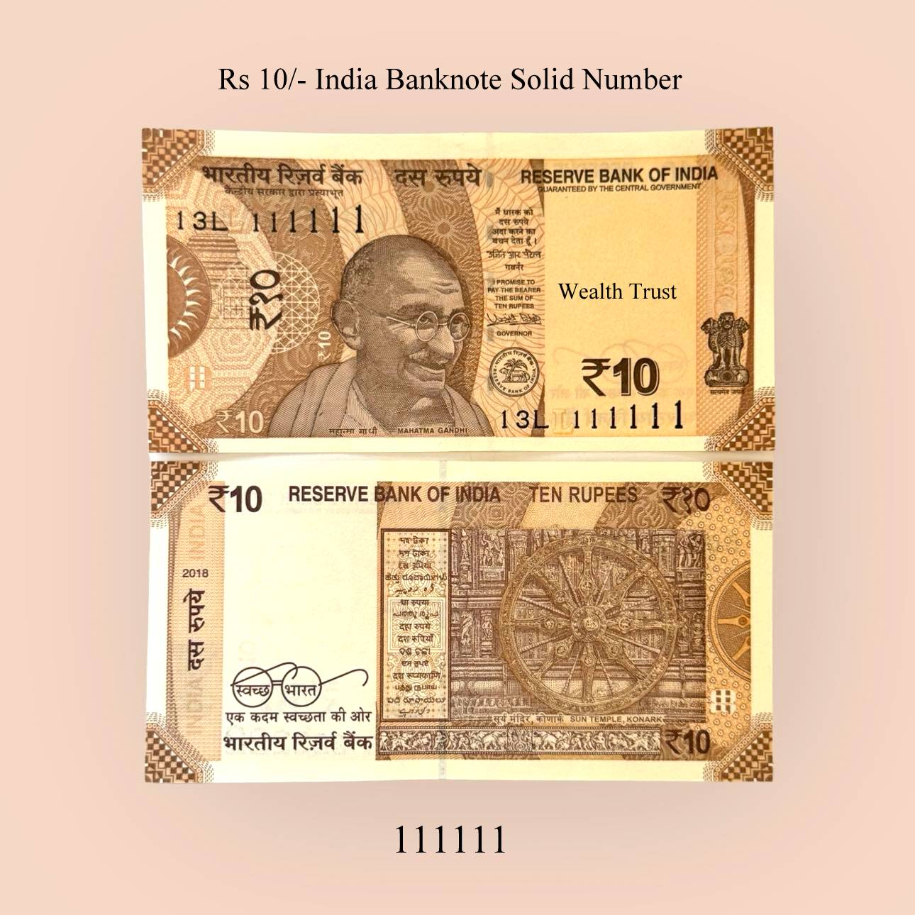 Rs 10/- India Banknote Solid Number Latest Issue 111111 GEM UNC Unique and Rare