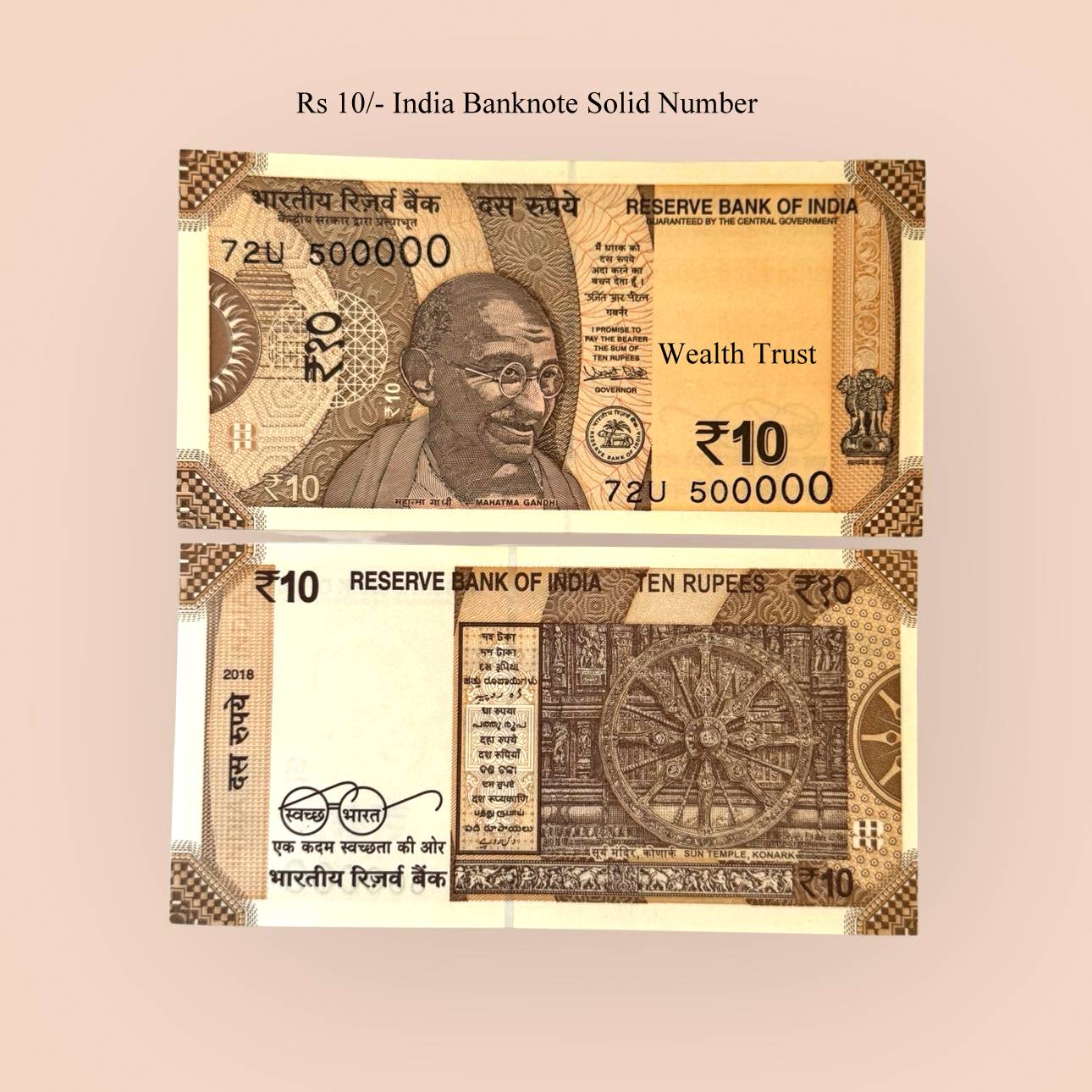 Rs 10/- India Banknote Solid Number Latest Issue 500000 GEM UNC Unique and Rare