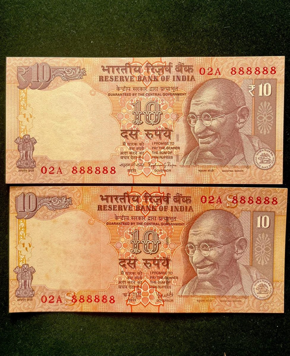 Rs 10 India Banknote TWIN SET Gem Unc Very Unique Set Solid Number 02A 888888