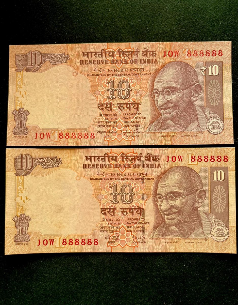 Rs 10 India Banknote TWIN SET Gem Unc Very Unique Set Solid Number 10W 888888